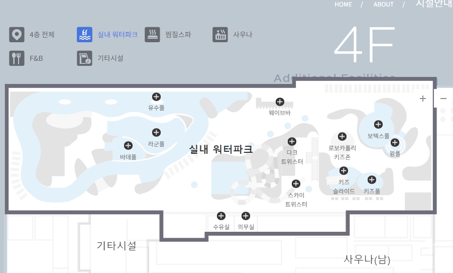 - 영업 시간: 실내 - 10:00~19:00, 야외 - 11:00~18:00, 찜질스파