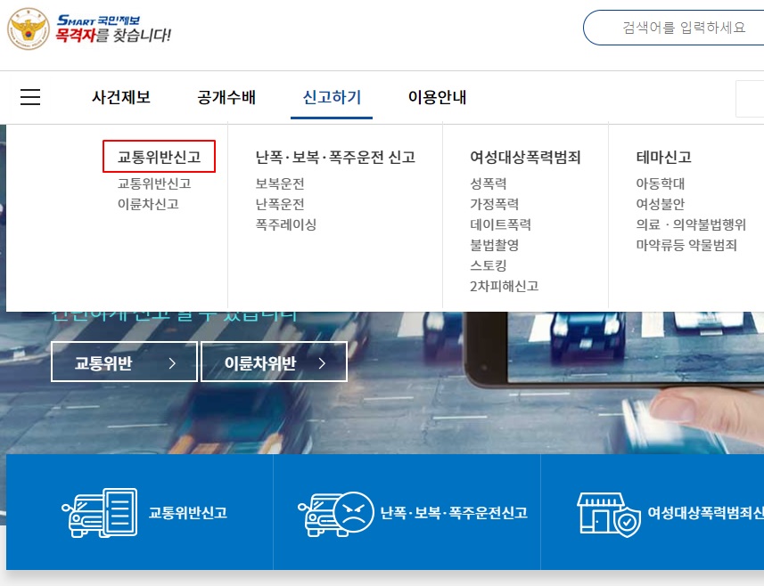 목격한 사건이나 교통위반에 대해 제보하고자 한다면 아래의 안내에 따라 신고를 진행해 주시기 바랍니다.