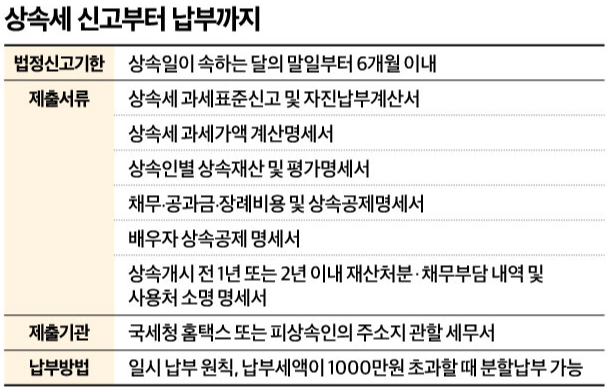상속세 계산과 신고 절차는 다음과 같습니다: