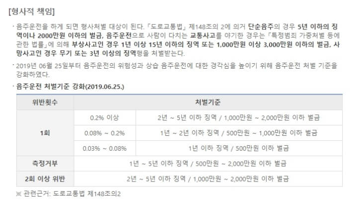 4. 혈중 알코올 농도가 0.08% 이상이고 대물 사고 또는 대인 사고가 발생한 경우, 면허는 2년 동안 취소됩니다. 음주운전이 2회 적발된 경우, 면허는 2년 동안 취소됩니다.