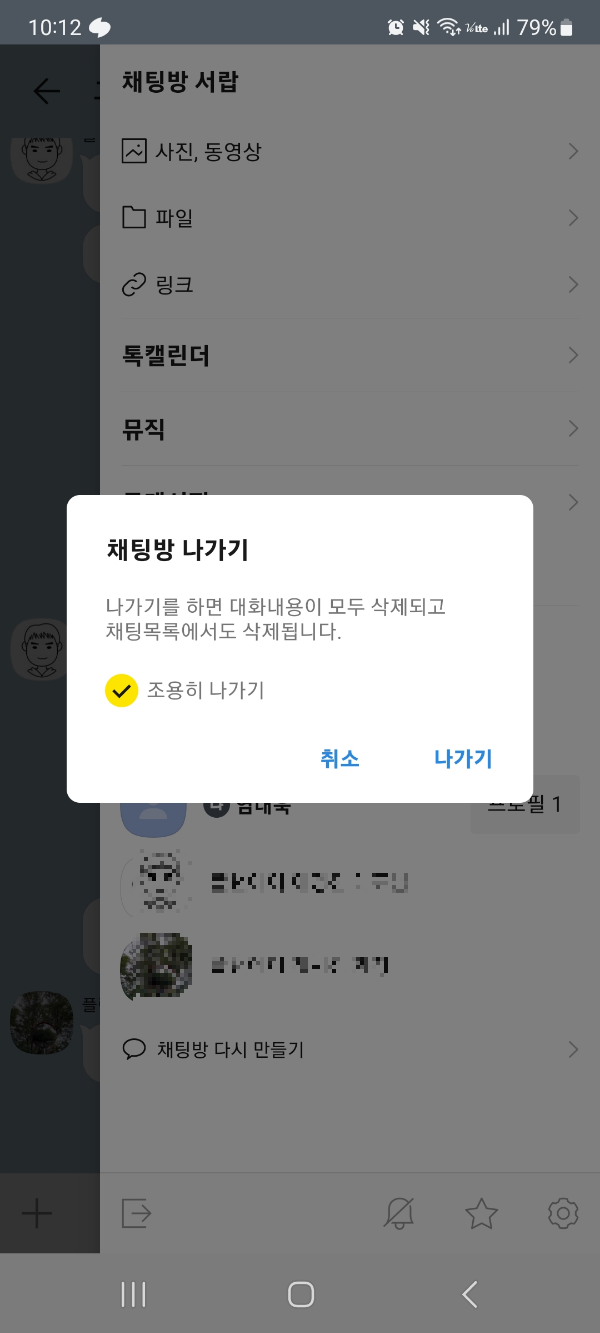 채팅방 조용히 나가기 기능