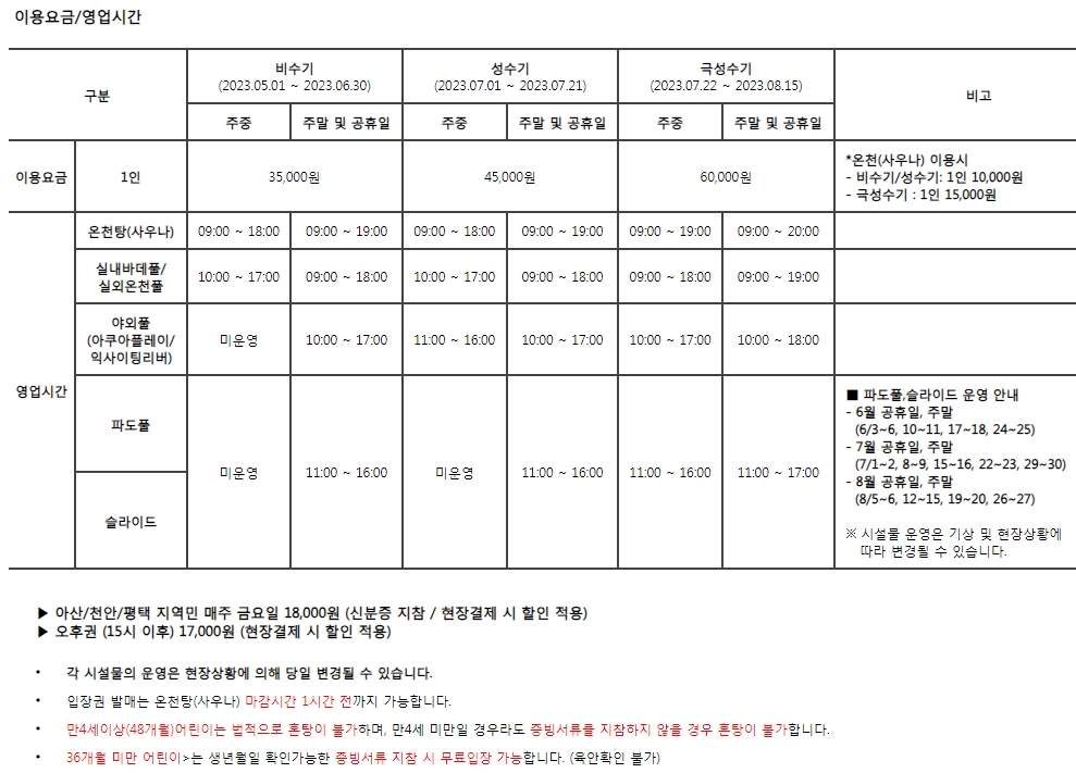 아산 스파비스 워터파크는 극강의 가성비를 자랑하는 수도권에서 가까운아산에 위치한 워터파크입니다. 파도풀, 유수풀, 슬라이드 등 워터파크로서 갖춰야 할 구색은 전부 갖추고 있고 푸드코트도 나쁘지 않아서 저렴하게 즐기고 싶다면 단연 추천하는 곳입니다.