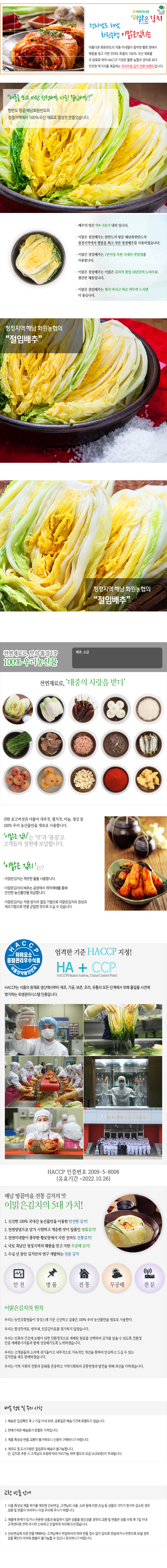 미네랄이 풍부한 황토에서 재배되며, 국립농산물 품질관리원에서는 해남 절임배추를 지리적 표시 제11호로 등록하여 품질을 보장하고 있습니다. 김치는 한국 음식 중 가장 대표적인 음식 중 하나로 알려져 있습니다. 건강에 좋은 유산균을 함유하고 있어 많은 사람들이 섭취하고 있습니다.