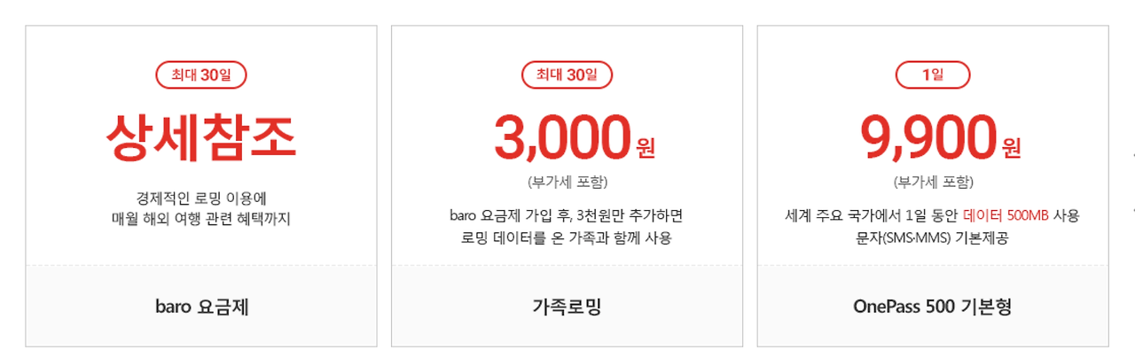 - 여행 기간과 목적지에 적합한 요금제 선택