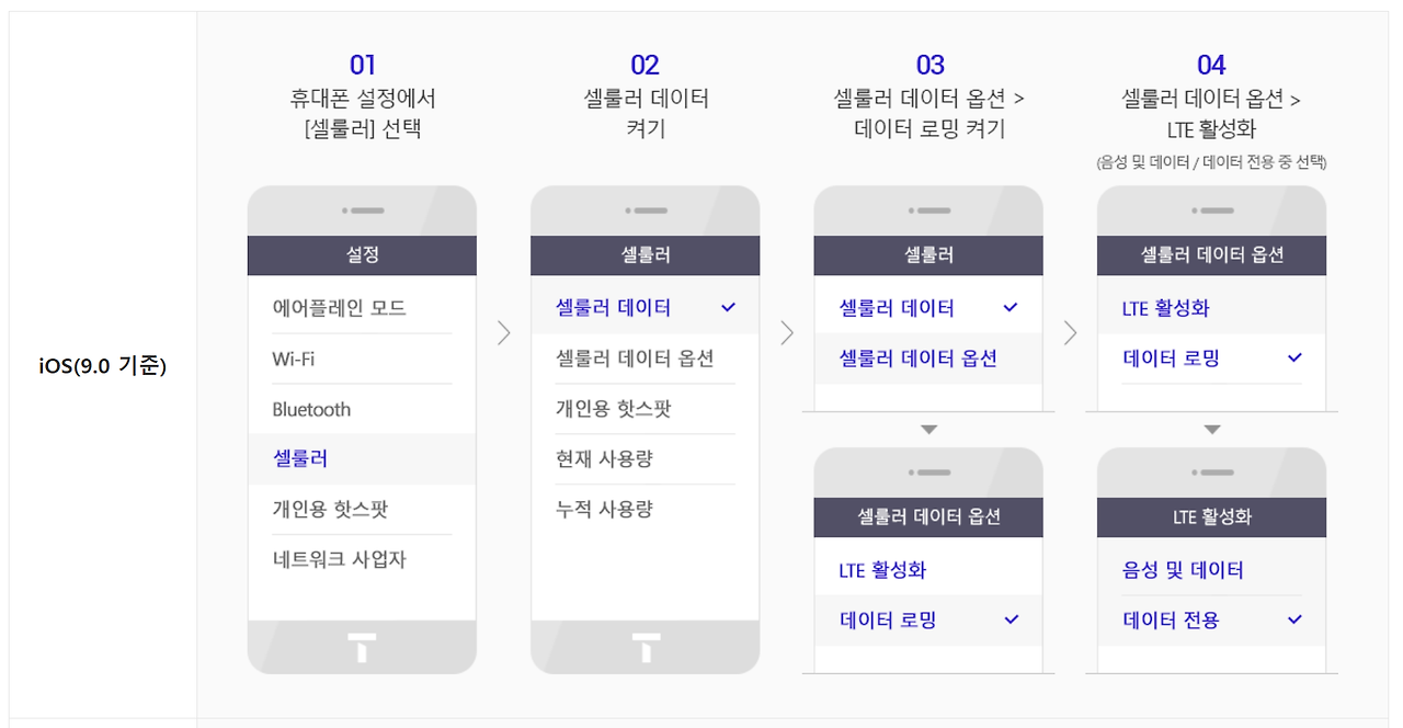 - LTE 우선 모드 설정 필요 (일부 국가에서는 3G 연결 가능성 있음)